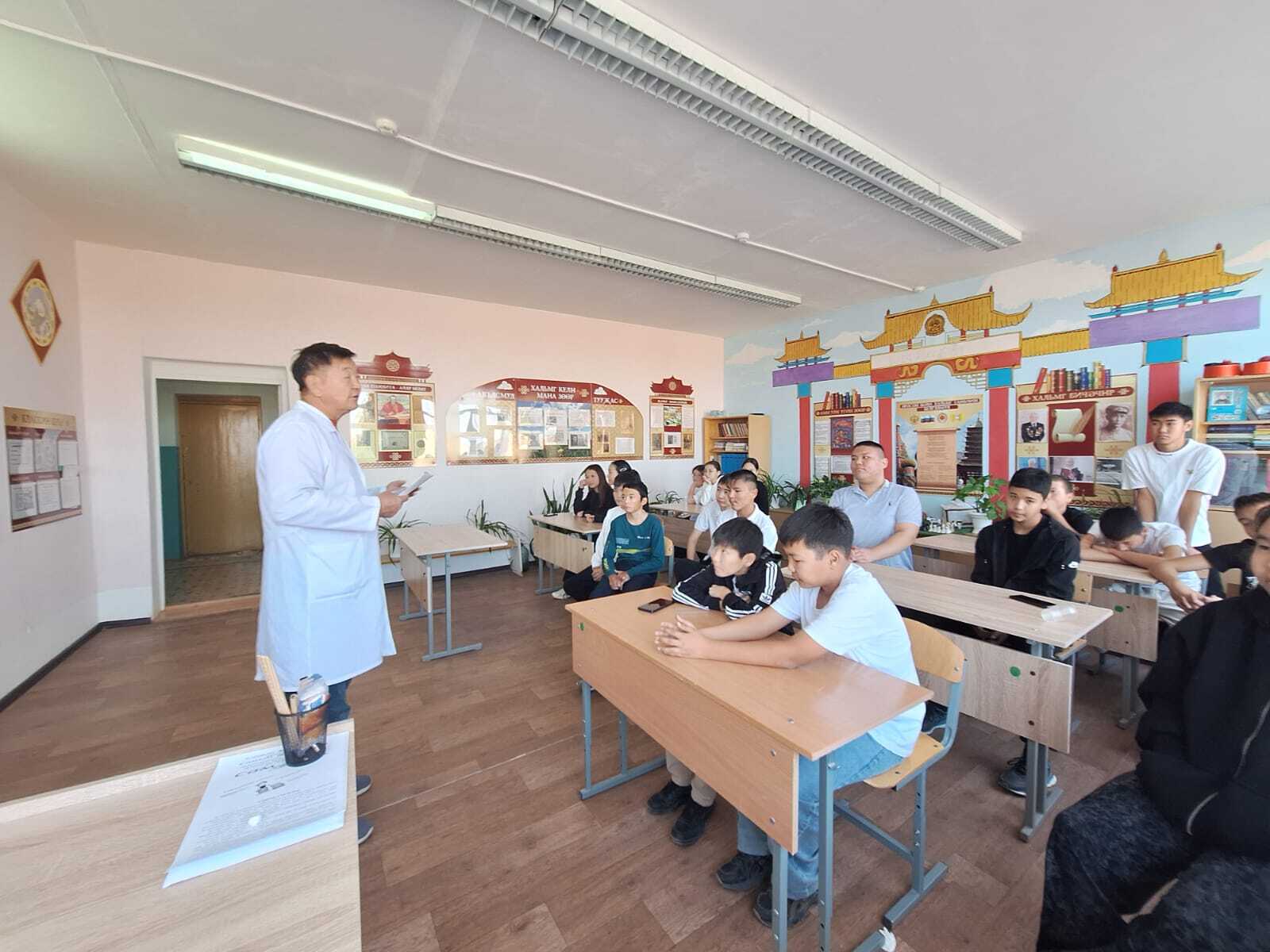 Врач психиатр-нарколог для оказания помощи в сельских населенных пунктах Юстинского района Ходжаев Эренцен Авяевич прочитал лекцию с демонстрацией видеофильмов в МКОУ «Эрдниевская СОШ им.Э.М.Кектеева» на тему «Профилактика наркомании и алкоголизма среди детей и подростков».